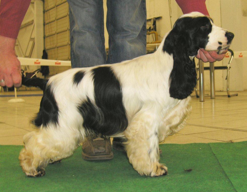 26.01.2008 - CACIB show Trenčín (SK), výborná 1, CAJC, M. Stanovský - pěkná hlava, výborný krk, výrazný kohoutek, pevná a spáditá linie, dostatečné předhrudí, dobrý hrudník, výborně zaúhlená, výborný pohyb, standardní dobře upravená srst.